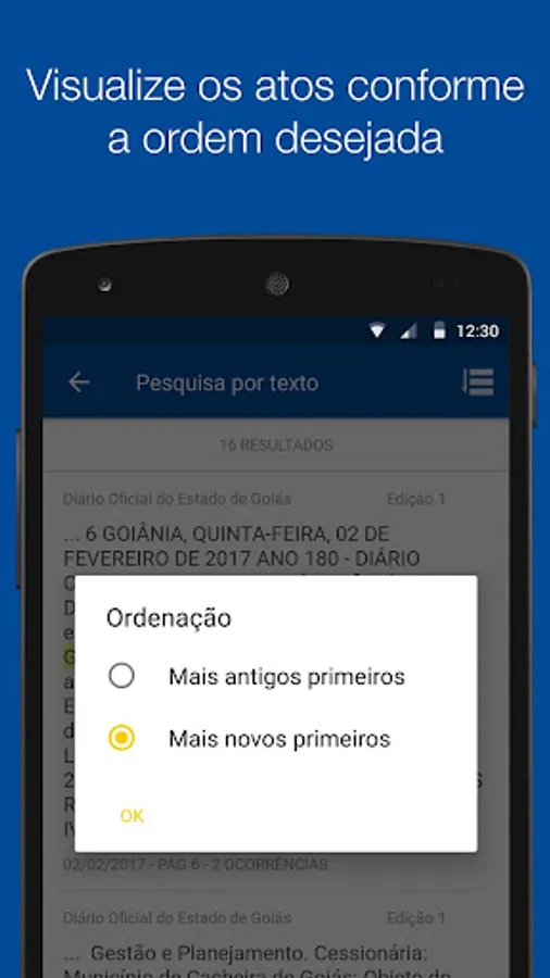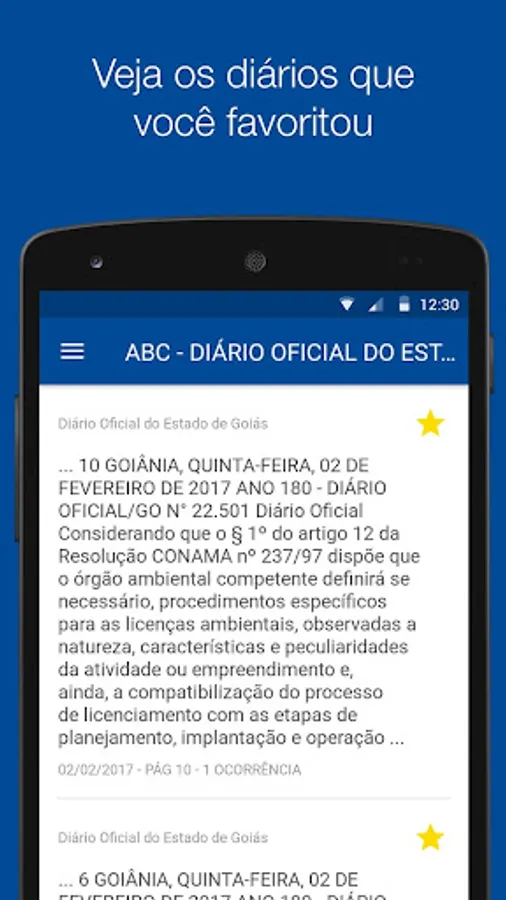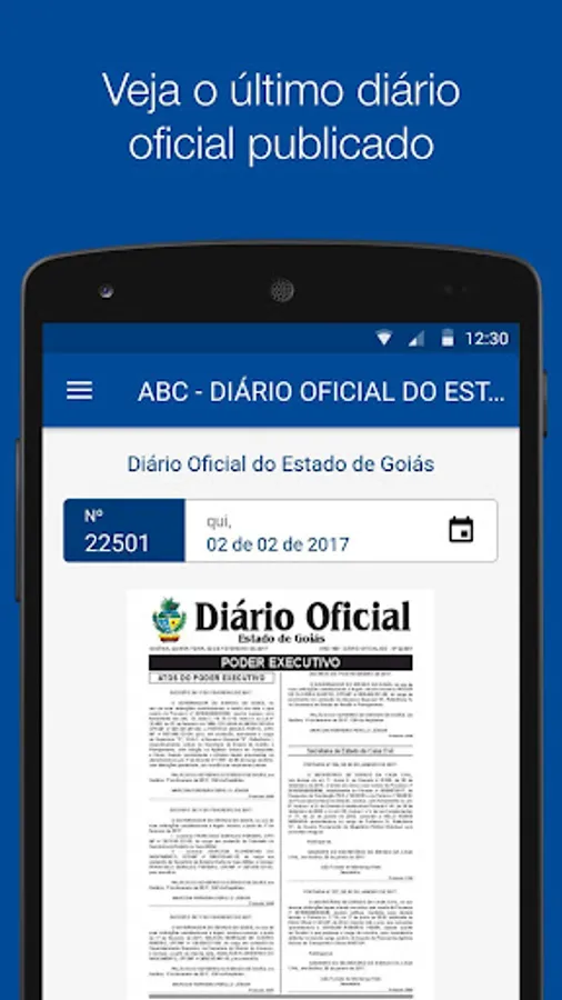 the Official Journal application aims the disclosure of decrees, orders, summonses and all that is officially related to the State of Goiás.