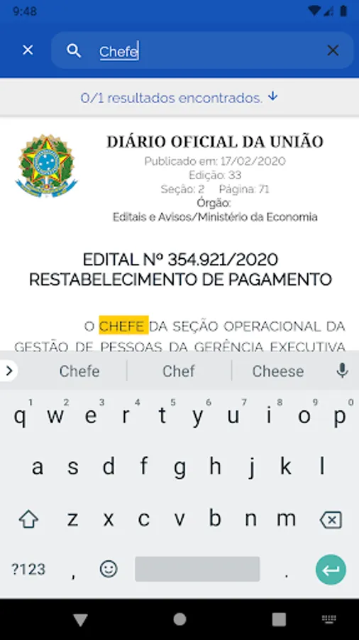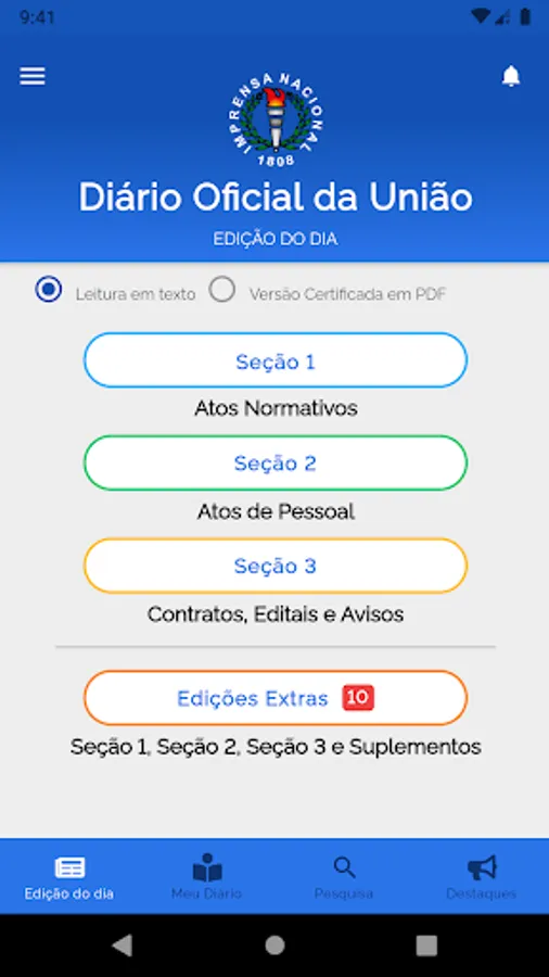 Mobile application that facilitates the reading of the Official Gazette (DOU), a journal that publishes the official information of the Federal Government since 1862.