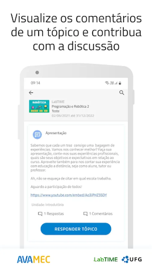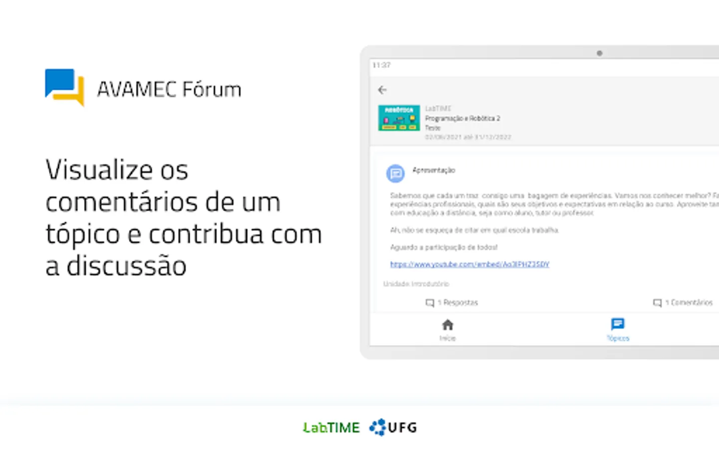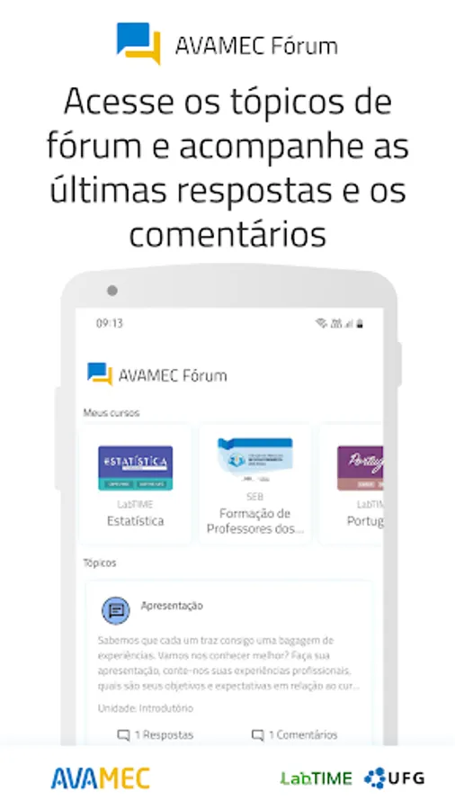 The AVAMEC Forum application allows the user to quickly access the forum topics of the courses he participates in, keeping track of the latest responses and comments sent to these topics. In addition to accessing the topics, it is possible for the user to contribute to the class discussion with answers and comments.