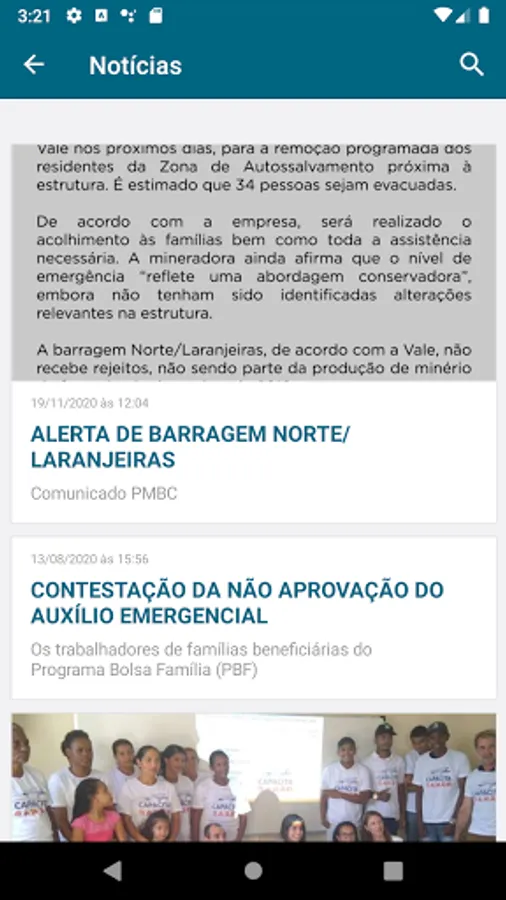 • News: In this item, the citizen can see through the application itself, all the materials that are available on the Portal Municipality. The reports are displayed in a list organized by date and features, in addition to texts, images associated with matter and other related content to it, enabling people to obtain more information on the subject of interest.