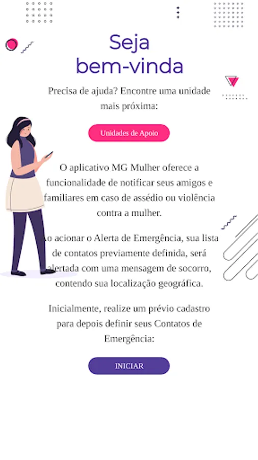 Developed by the Government of Minas Gerais, through the Civil Police of Minas Gerais, with support from the State Secretariat of Justice and Public Security, the application is a technological platform aimed at the dissemination of guidance and information content on the theme of violence against woman. It will also be used to support victims through the operation of a support network, services and quick contact in case of violation of rights.