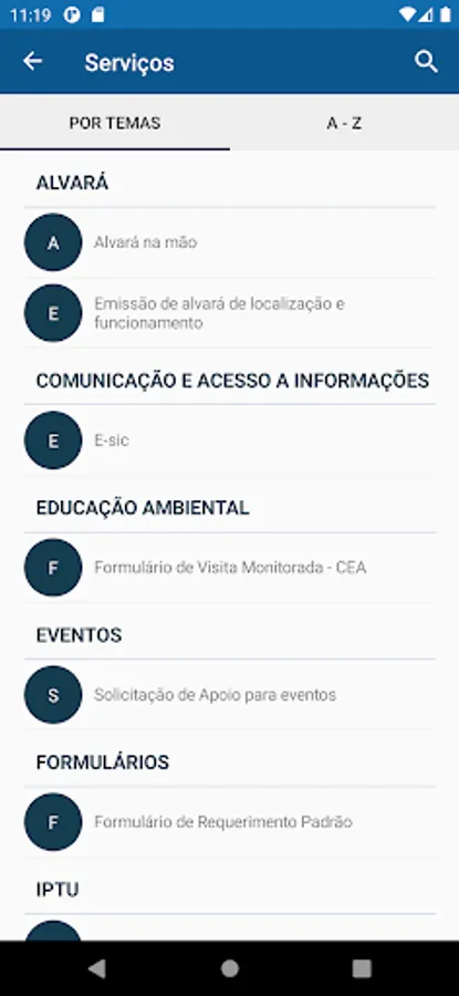 The Ponte Nova City Hall Application also has the keyword search tool to make it easy to find any content available in the City Hall database. In addition to having directional links to the platforms that the City uses on the Internet, such as the Institutional and Transparency Portals, facilitating navigation and access to information. The citizen can choose to display the options in list or icons.