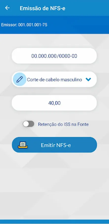 This APP allows SIMEI opting service providers or Individuals to issue NFS-e with national standard for services previously registered by the user as favorites in the NFS-e Web Issuer. The note can be quickly issued by filling in the fields presented by the APP in the “Issue NFS-e” functionality.