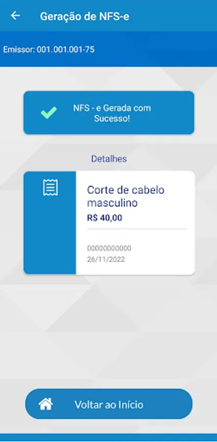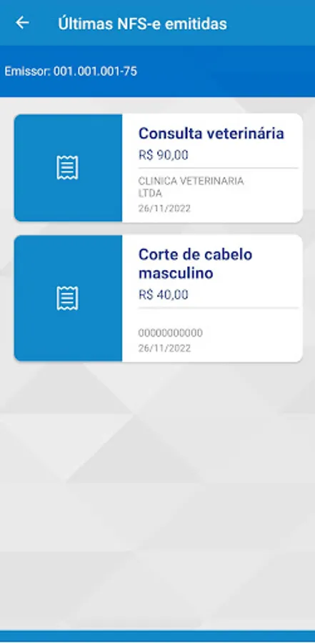 The APP also allows the user to consult the NFS-e most recently issued by the service provider through access to the “NFS-e issued” functionality.