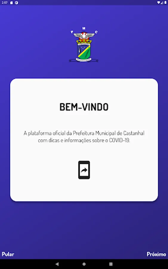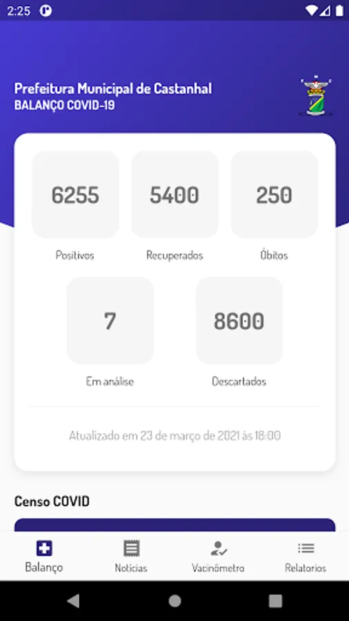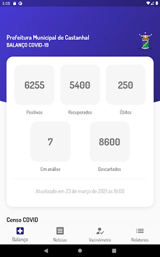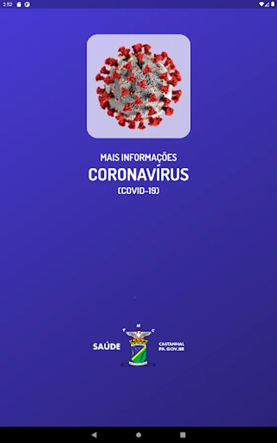 Official application of the Municipality of Castanhal to keep the population informed about new cases of coronavirus in the city.