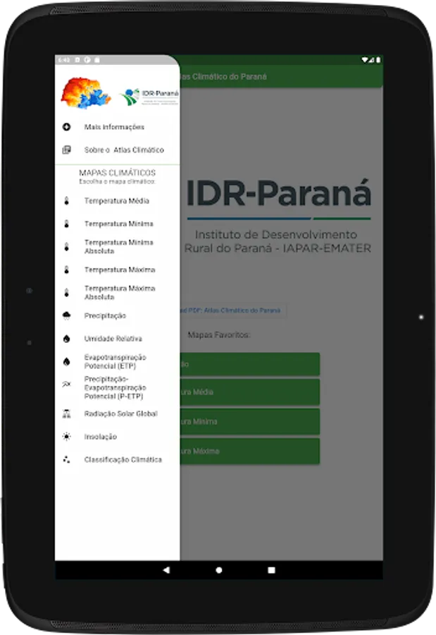 The Climatic Atlas of the State of Paraná (ClimAtlas-19) is a publication containing the climatological averages of the main meteorological elements, covering data from 1976 to 2015 (40 years).