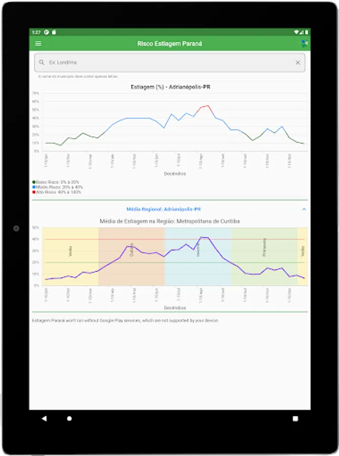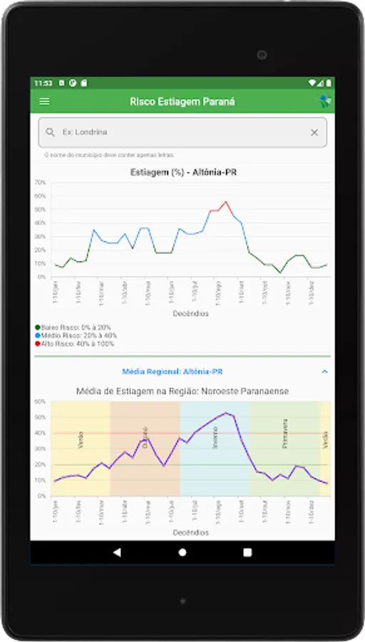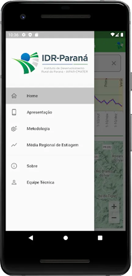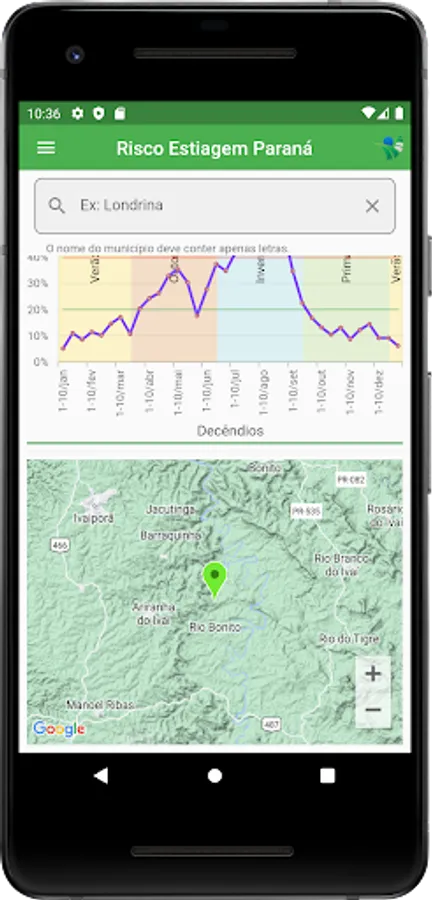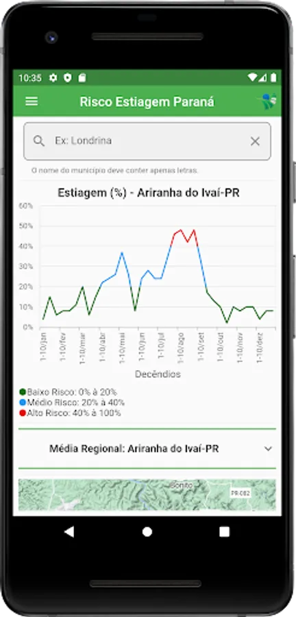 The “Estiagem Paraná” application aims to inform the risk of drought in several municipalities in the state of Paraná, in order to support the planning of agricultural activities aimed at reducing climate risks.