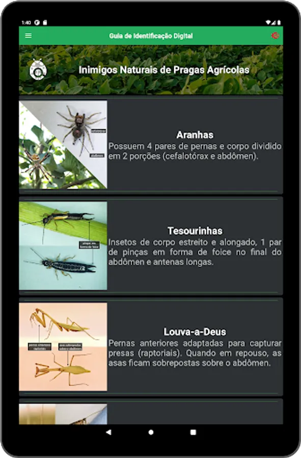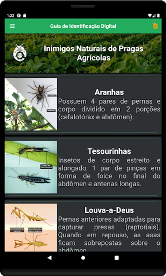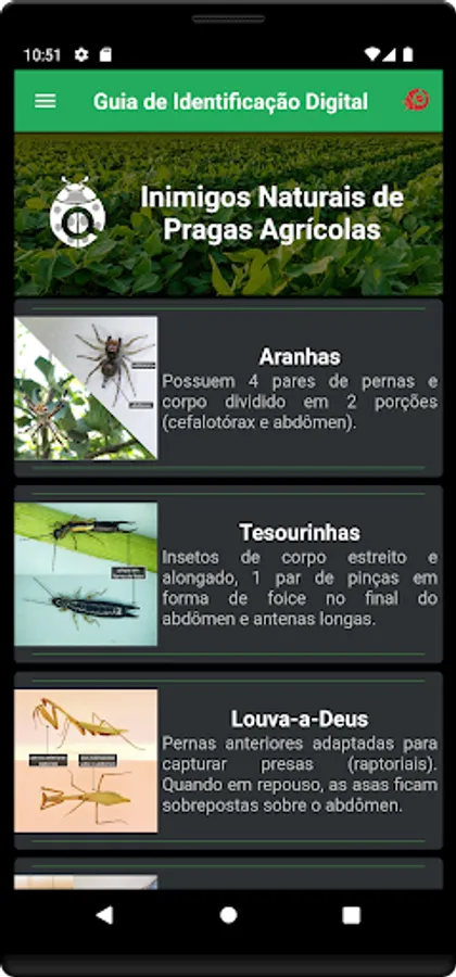 This application provides a brief diagnostic description and images for the recognition of the main predatory insects and parasitoids of agricultural pests.