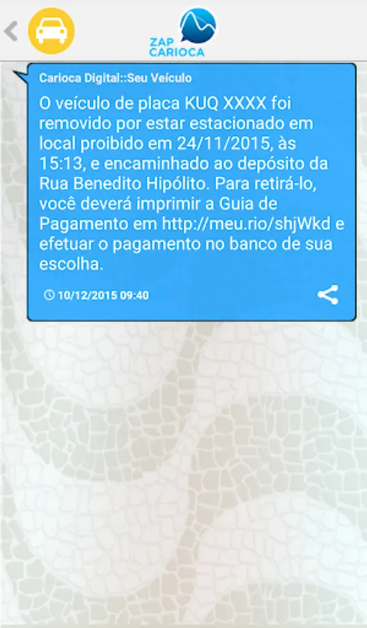 For the Zap Carioca work, the citizen must be registered in the Digital Carioca (http://carioca.rio).