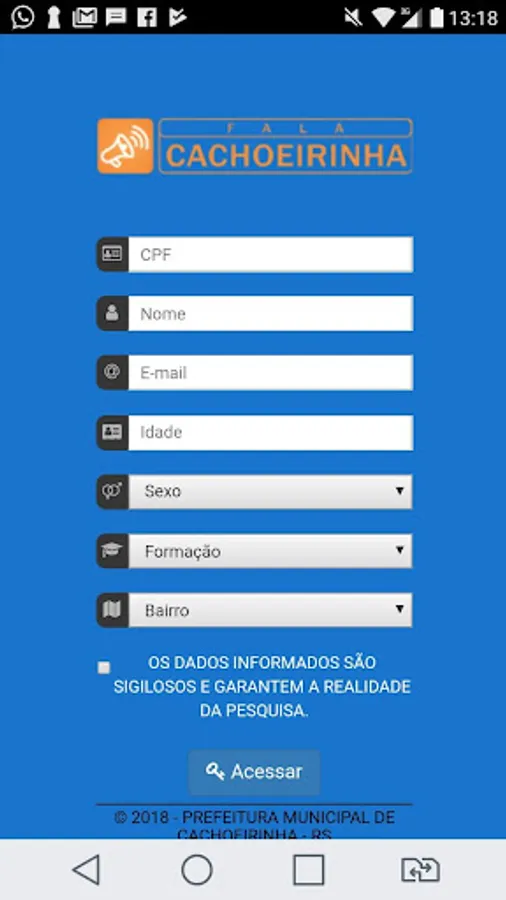 Evaluate each sector according to the service provided by the same in the city and help the City to make a Cachoeirinha better.
