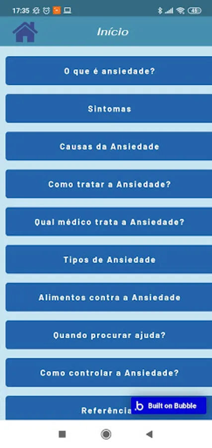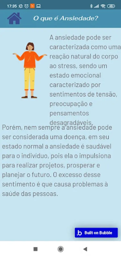 The application Unveiling Anxiety is free and was developed through a research project, carried out by Iago Wolff Gallas and Rafaela Fröhlich Duarte, under the guidance of Professor Vanderlize San Martins de Lima.