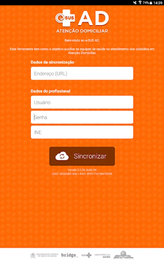*** ATTENTION! Version 2.3.00 of the e-SUS AD application supports synchronization ONLY with version 3.2.21 or later of the Electronic Health Record of e-SUS AB. ***
