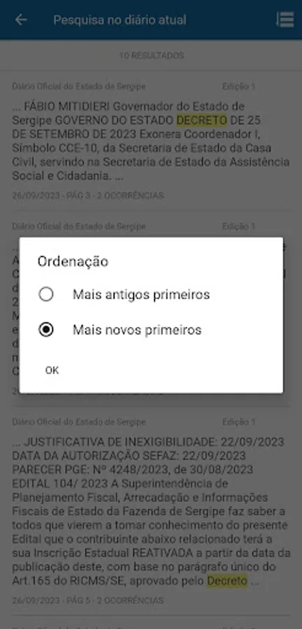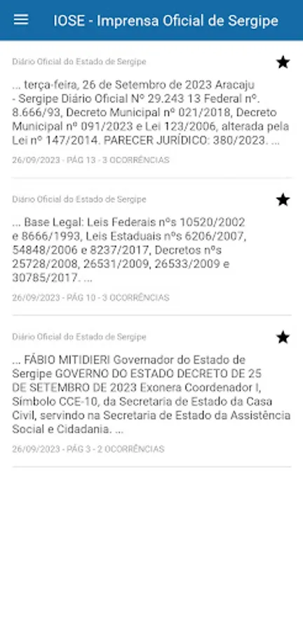 the Official Journal application aims the disclosure of decrees, orders, summonses and all that is officially related to the State of Sergipe.
