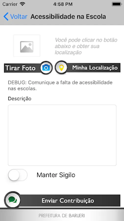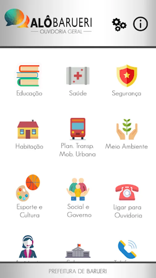 APP - Alô Barueri is a channel of communication between the population and the General Ombudsman of the Municipality. Through it the citizen can register compliment, complaint, complaint, service, suggestion and request information.