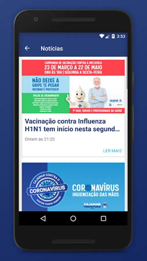 The application "Cajamar City Hall" is a portal developed by CIJUN - Company of Informatics of Jundiaí, with the purpose of offering the citizens one more channel for consumption of information of the city.