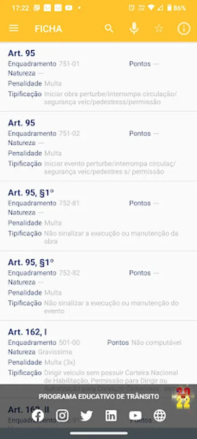 In this application, traffic legislation is available by categories, which makes it possible to search for specific information.