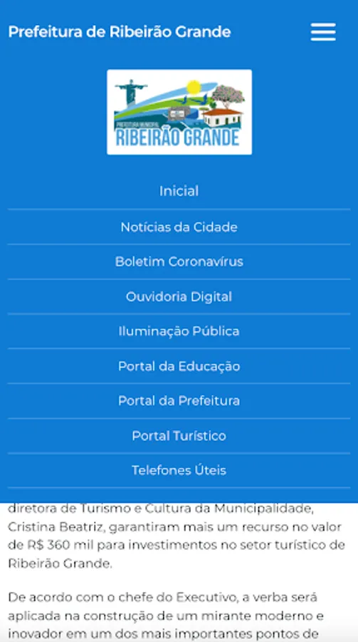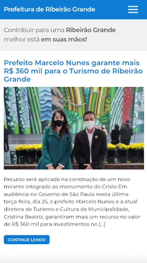 The application "City Hall of Ribeirão Grande" has the purpose of offering citizens another channel for consumption of services, requests and accompaniments, in addition to city events and news.