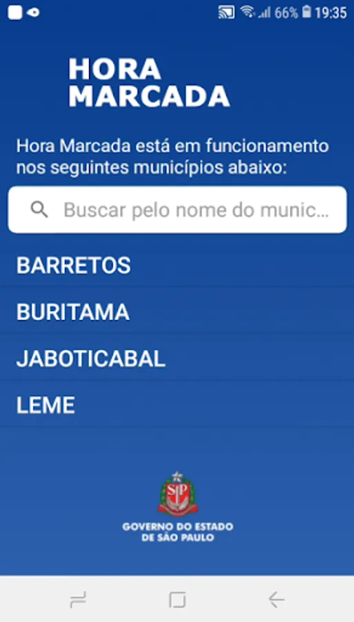 In order to take advantage of the “Hora Marcada” facilities, you must be linked to a UBS (Basic Health Unit) that is part of the program. To consult the participating municipalities, simply access: www.saude.sp.gov.br, using your SUS or CPF Card, and the password you choose to protect your access. Access to the app requires internet connection.