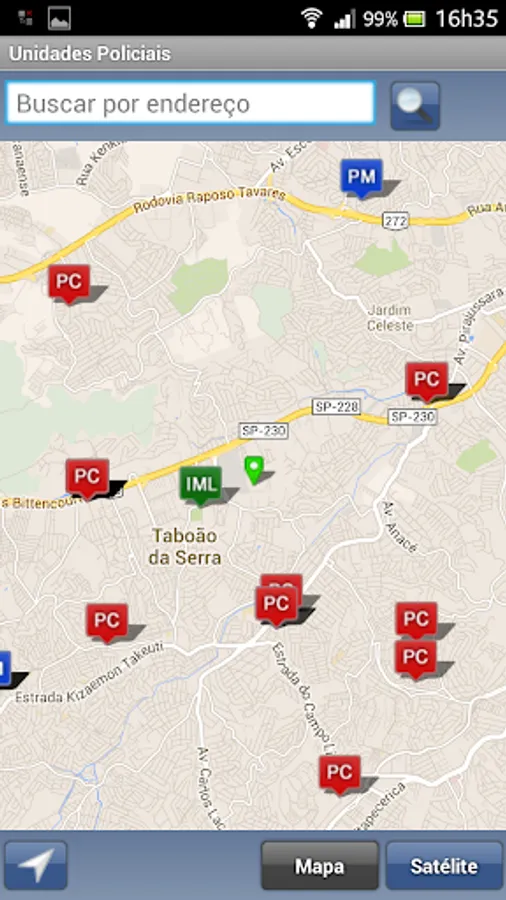 The Police Units app displays the nearest stations from your location using Google Maps with options to zoom in and zoom, map view or satellite. Also allows the query by address.
