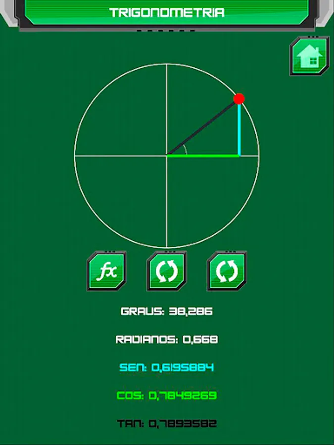 Application for mathematics students, with geometry and trigonometry content. Design shapes such as circles, lines and polygons in the trigonometry option, see the sine, cosine and tangent functions in the geometry option.