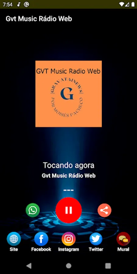 Application of the Gvt Music Rádio Web, located in the city of Gravataí - RS