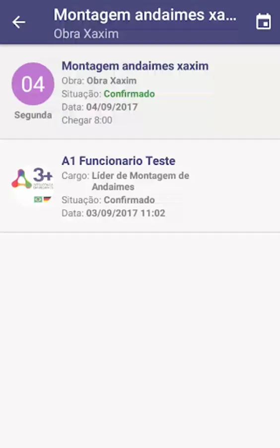 • Track all information regarding the schedule of daily activities, as well as responding to requests in real time by the application and email. After your request, we confirm the programming of services, we insert the necessary observations and allocate the professionals who perform services in his work. When you change the status to "Scheduled" or "Confirmed" or "Canceled", you receive a notification of their schedule, including detailed information on the assembly team, such as photo, post and telephone number of our professionals. So you can check out the program at any time and have access to the full history of performed schedules, resulting in more control and time savings in their day-to-day. Additionally, you receive real-time notifications about the arrival and departure time of the assembly team through check-in / check-out to be performed onsite services.