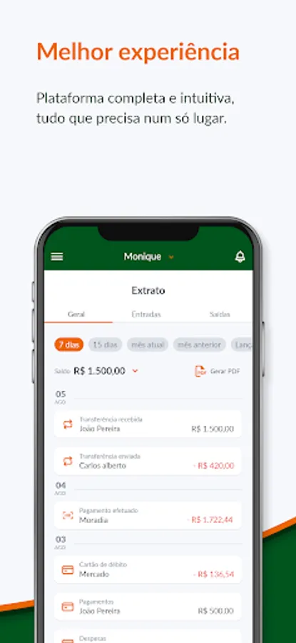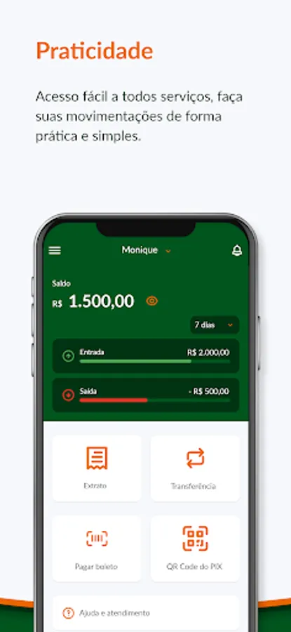 Just open the app and use of the various services, internal transfer, TED, mobile recharge, and more services.