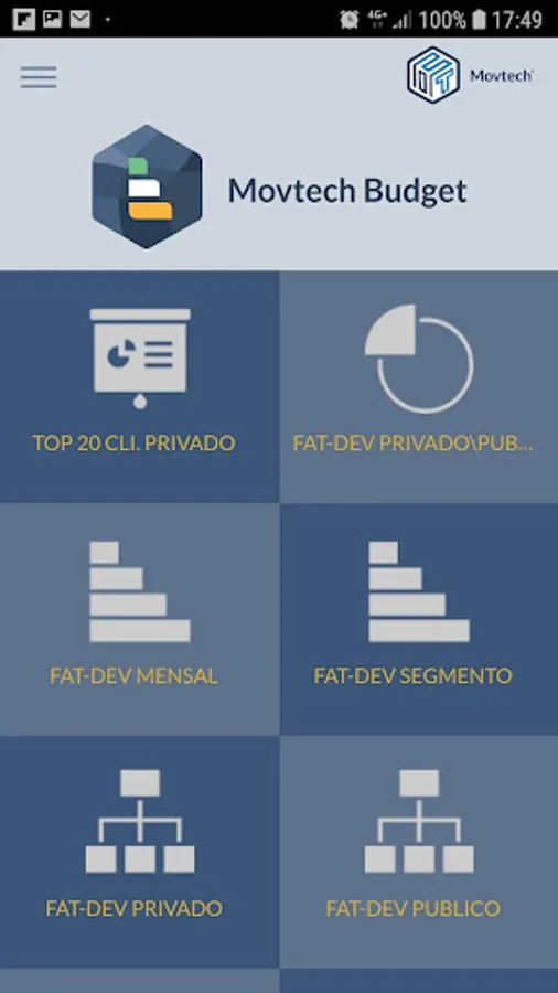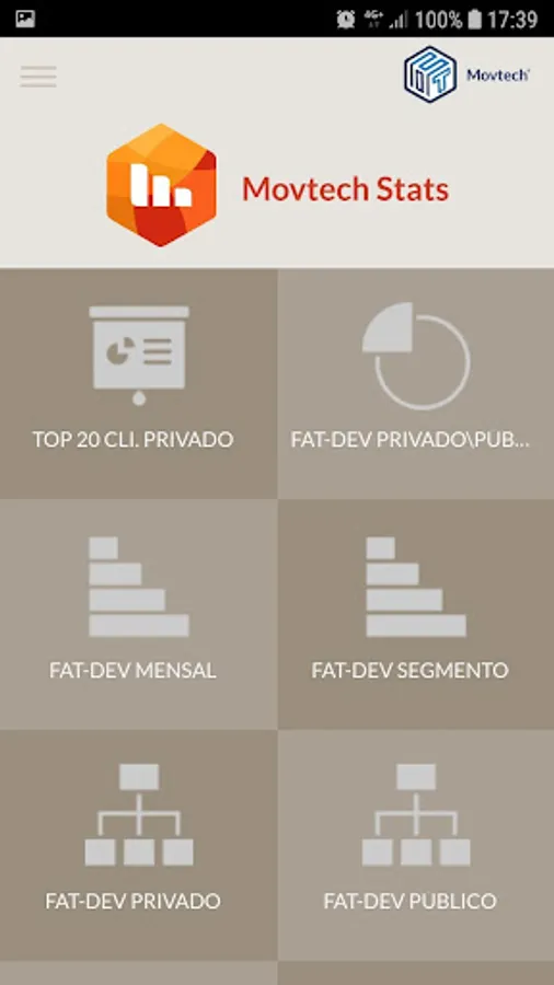 The Movtech App is an application that allows you to track statistics of your company, integrated with Movtech Stats and Movtech Budget.
