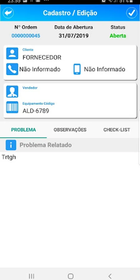 This application was developed to facilitate the opening of work orders by ERP users of Teorema Sistemas, registering and informing customers, equipment, problem description and checklist.