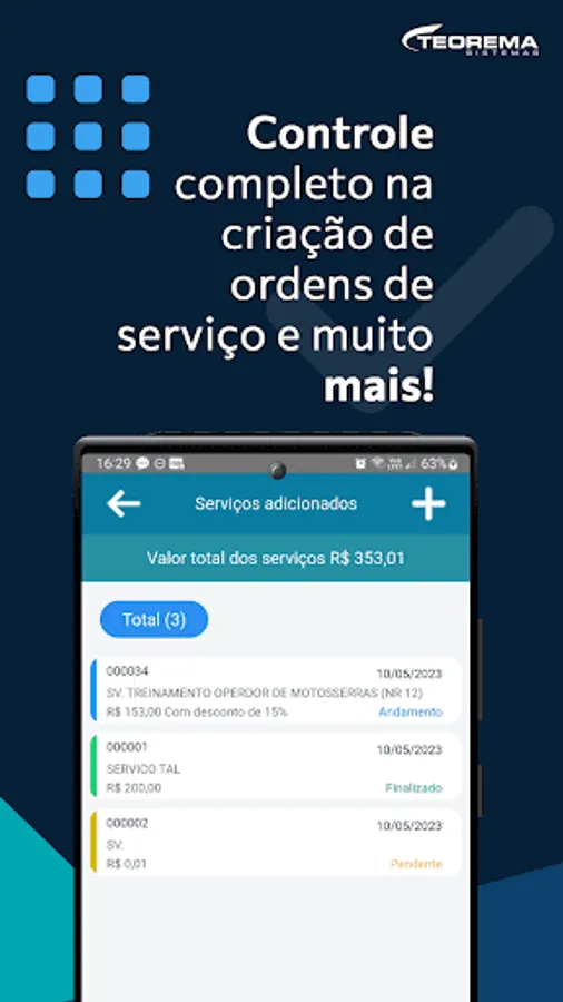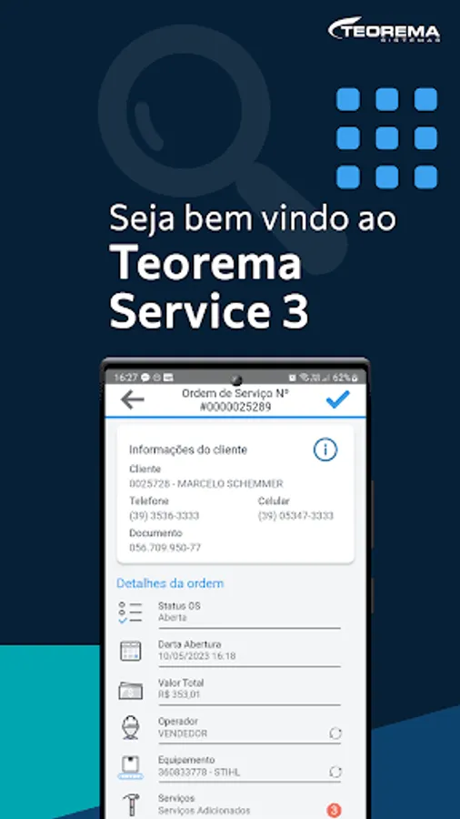 Teorema Service 3 is an innovative application designed to facilitate the creation of service orders through mobile devices, such as cell phones and tablets. It represents an improved and more advanced version of the previous application, offering a faster and more modern experience for users.
