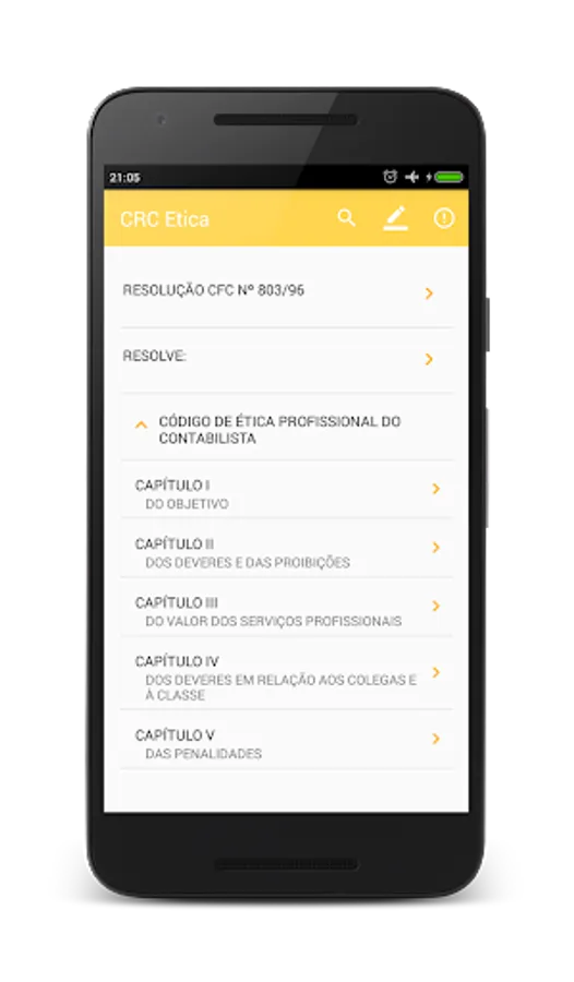The application provides an easy and quick consultation to the Code of Ethics of the Professional Accountant, so that every professional has at hand the regiment of the profession.