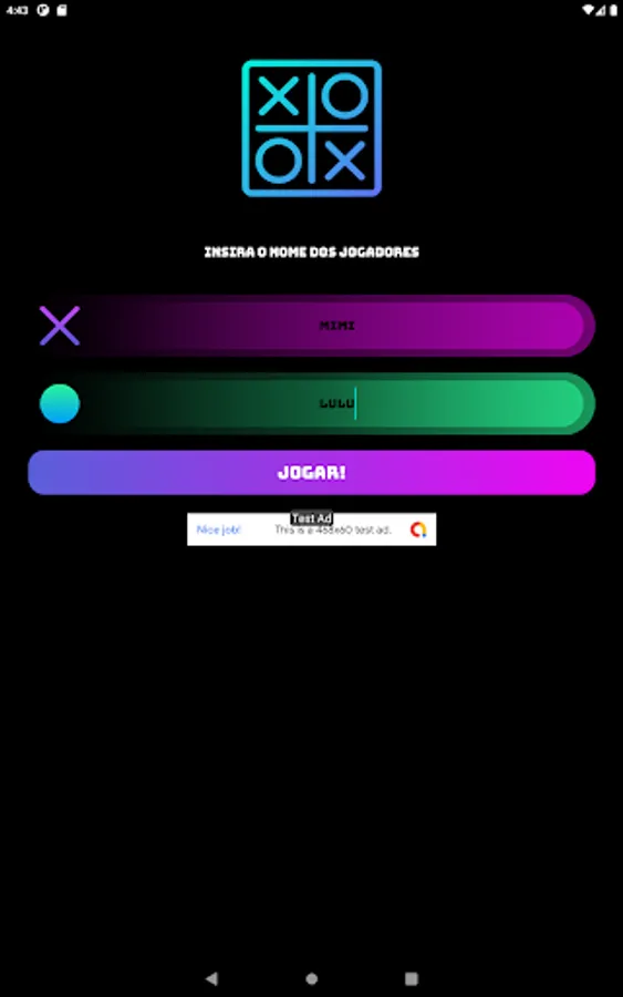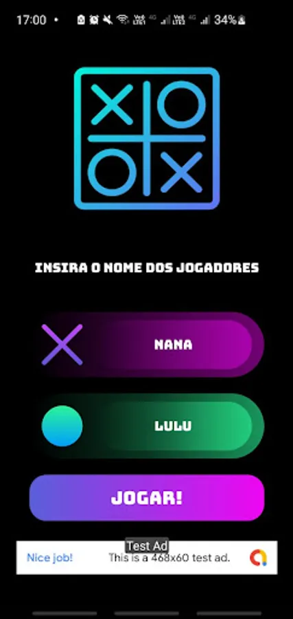 The objective of the game is to line up 3 identical symbols, before the opponent does. (X or O). Players must take turns in each move, marking one of the 9 free spaces initially, until one of the players manages to perform the sequence of three equal symbols vertically, horizontally or diagonally. The first person to make the combination wins!