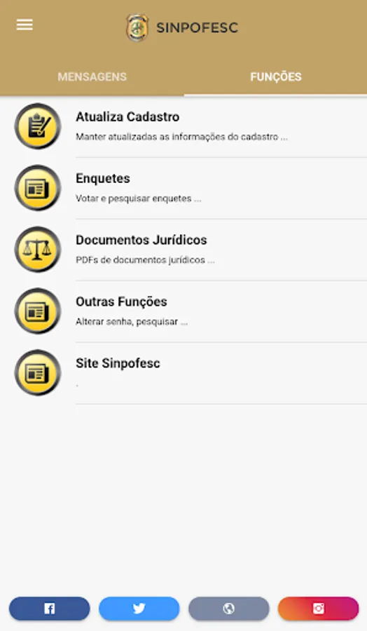- The SINPOFESC easily send one-time message text, images, links, HTML pages and files in general, for all affiliated users of the application.