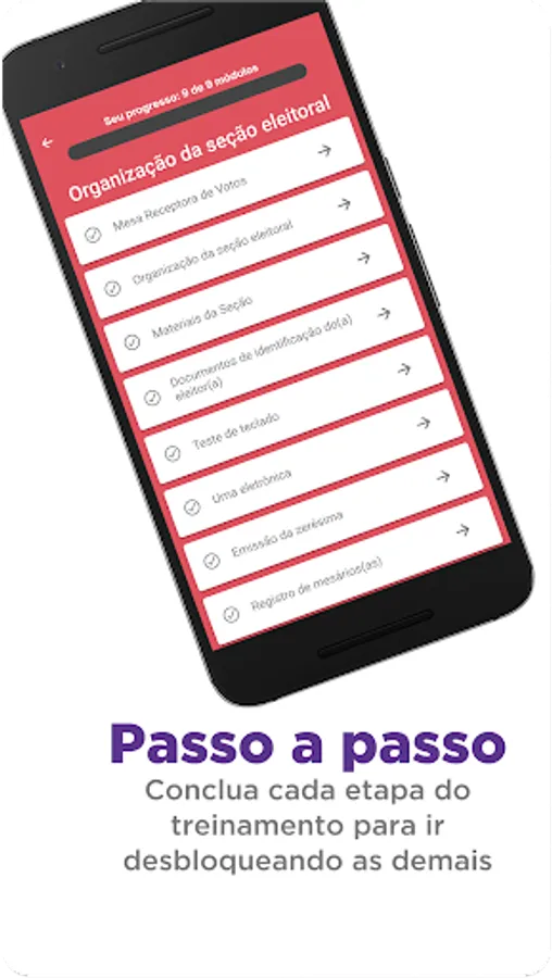 The Application Mesário is intended for training members of polling stations before elections, and also for quick and easy access to information during the day of electoral work.