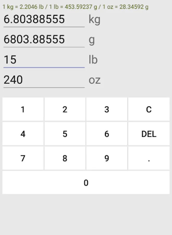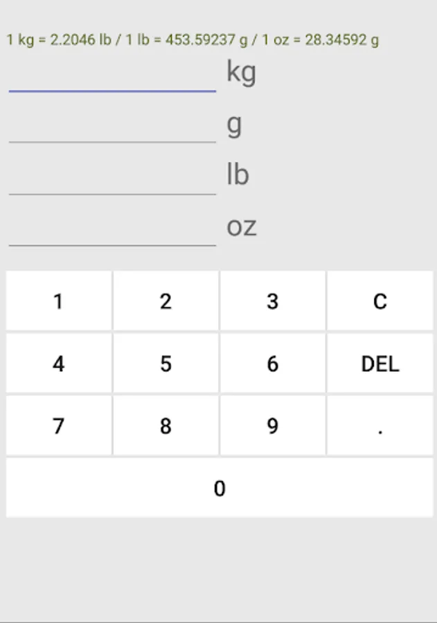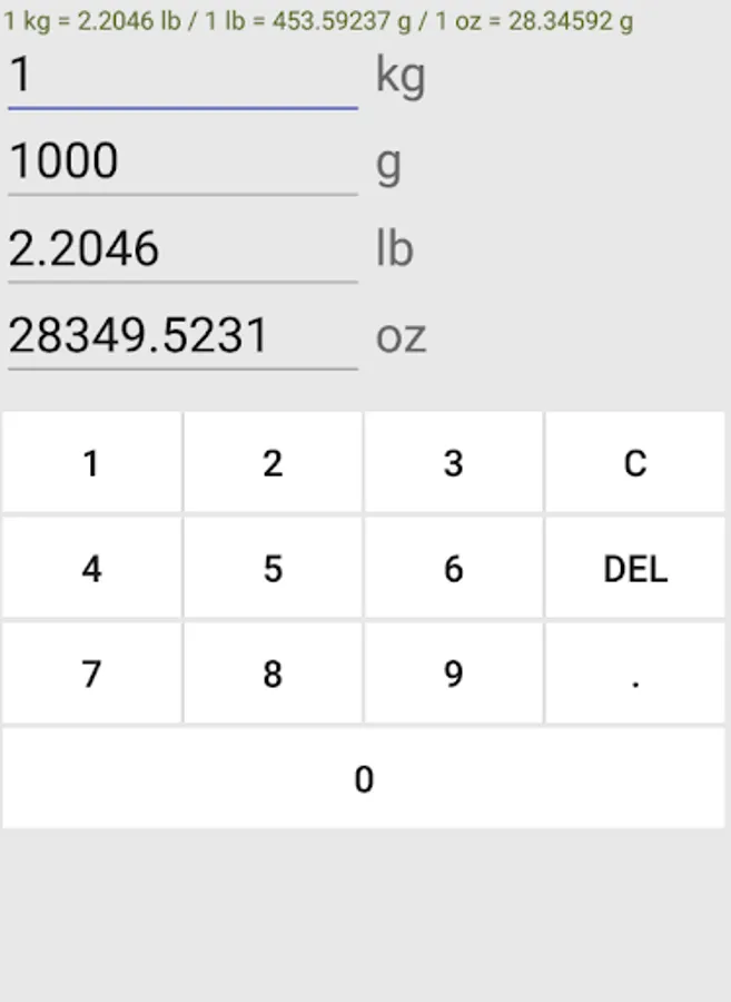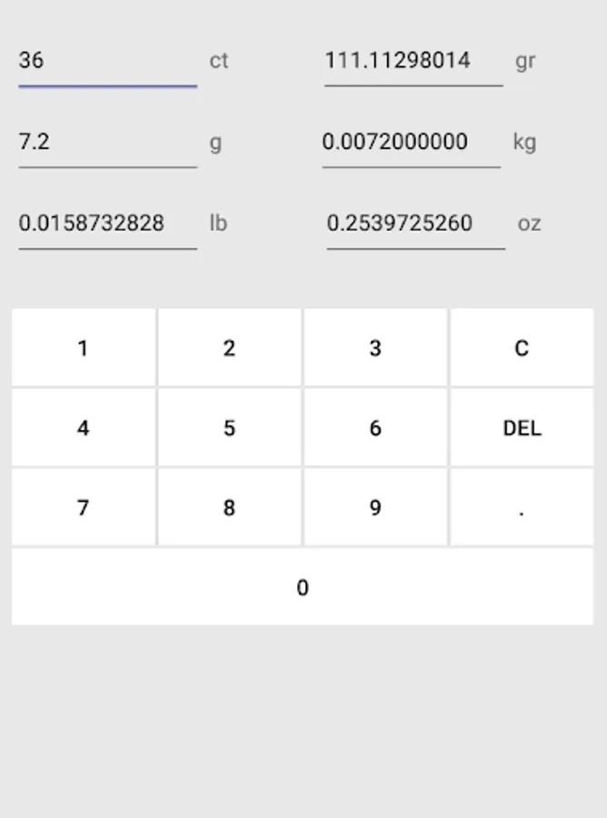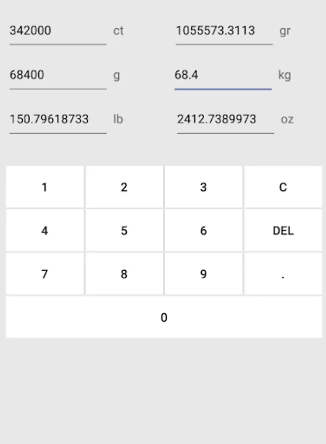 This app converts weight unit from ct, gr, g, kg, lb, and oz to other unit.