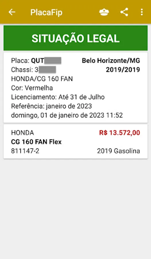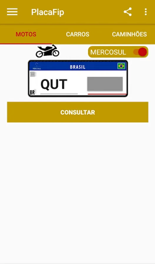 Inform the license plate of your vehicle or the one you want to buy/sell and get the list price of the vehicle with reference to the current month.