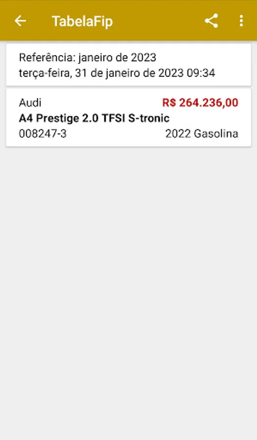 You can also consult the price of other model years and Zero KM by swiping sideways on the result screen.