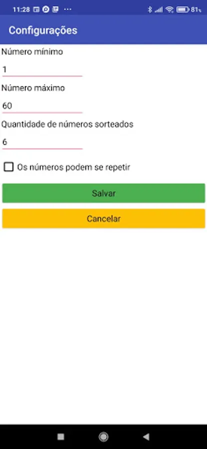 Sorteador de Números Screenshots