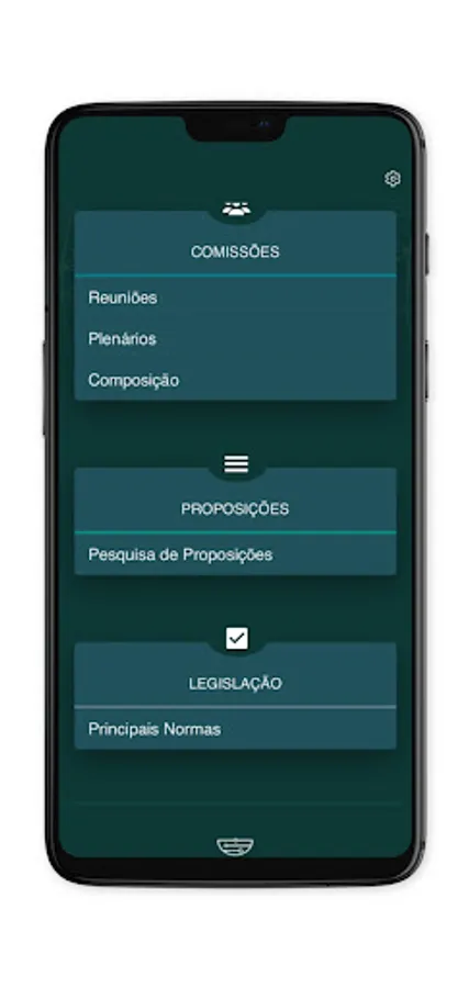 Notifications: the Settings icon at the top, right, the user can access the menu and select the Plenary Session of options and committees in which he has an interest, which will cause the user to receive automatic notifications about the activities of options selected.