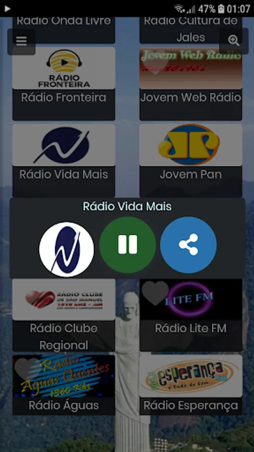 The best solution is this Application that allows you to listen to the major radios of Brazil ( AM / FM and web radios )