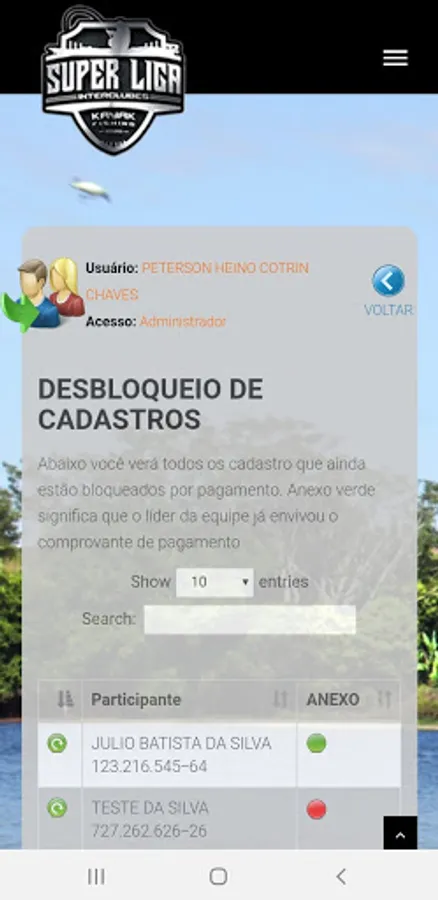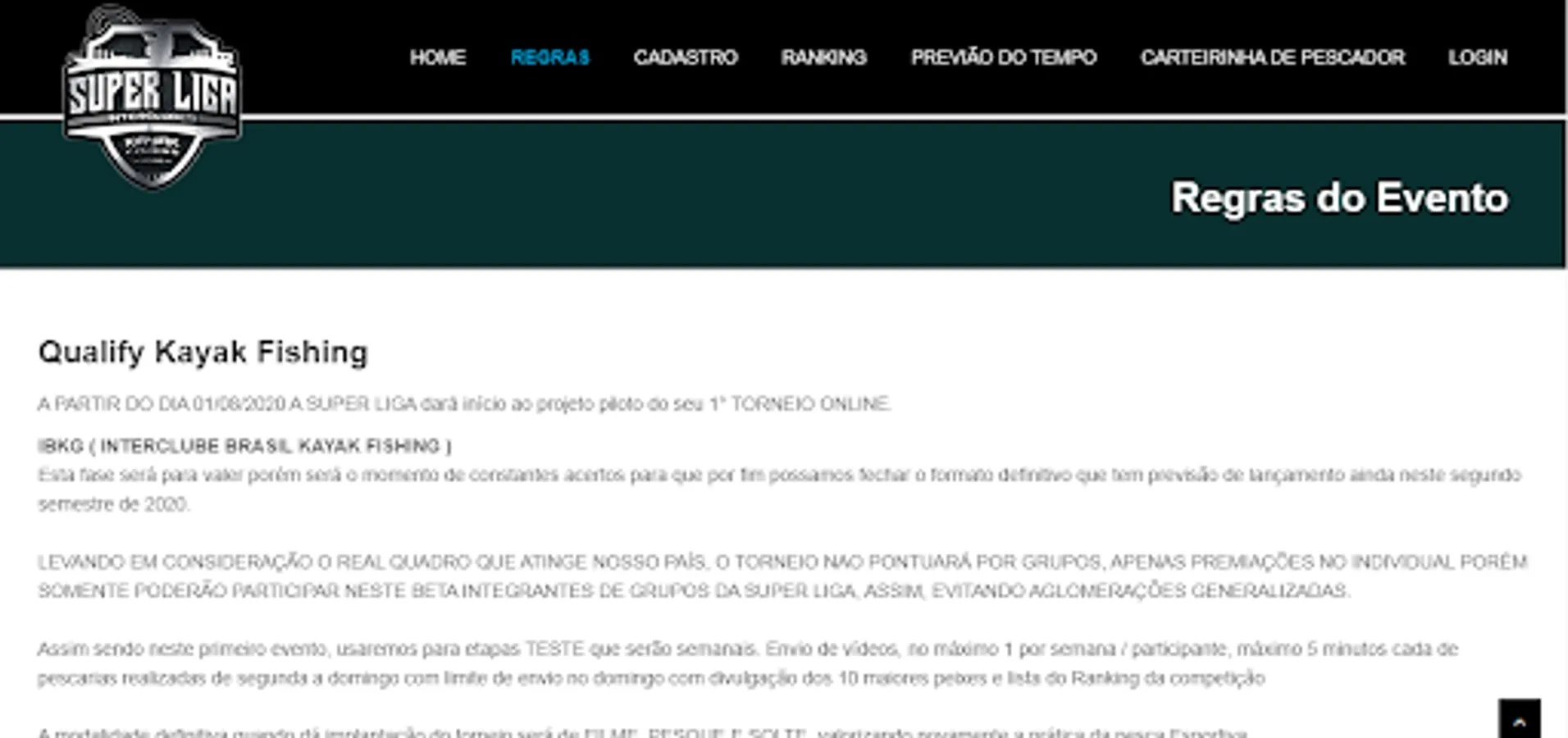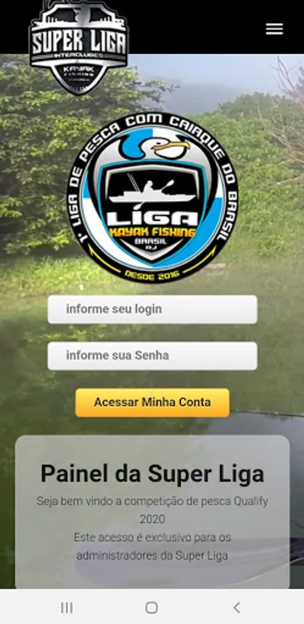 Application of the Super League of Kayak Fishing Brazil for use in the IBKG fishing event (INTERCLUBE BRASIL KAYAK FISHING) and other SuperLiga events. Control and management of livestock with real-time ranking by species in the competition.