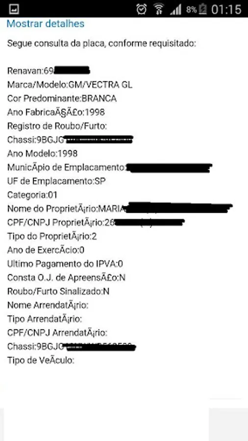 #Dados Of property taxes, of theft situation and more, the vehicle informed board.