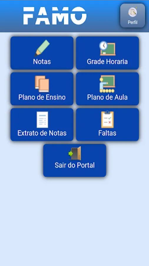 This application aims to disseminate the grades, absences, teaching plan, lesson plan, extract of grades and timetable of students of FAMO Faculdade Porto das Monções.