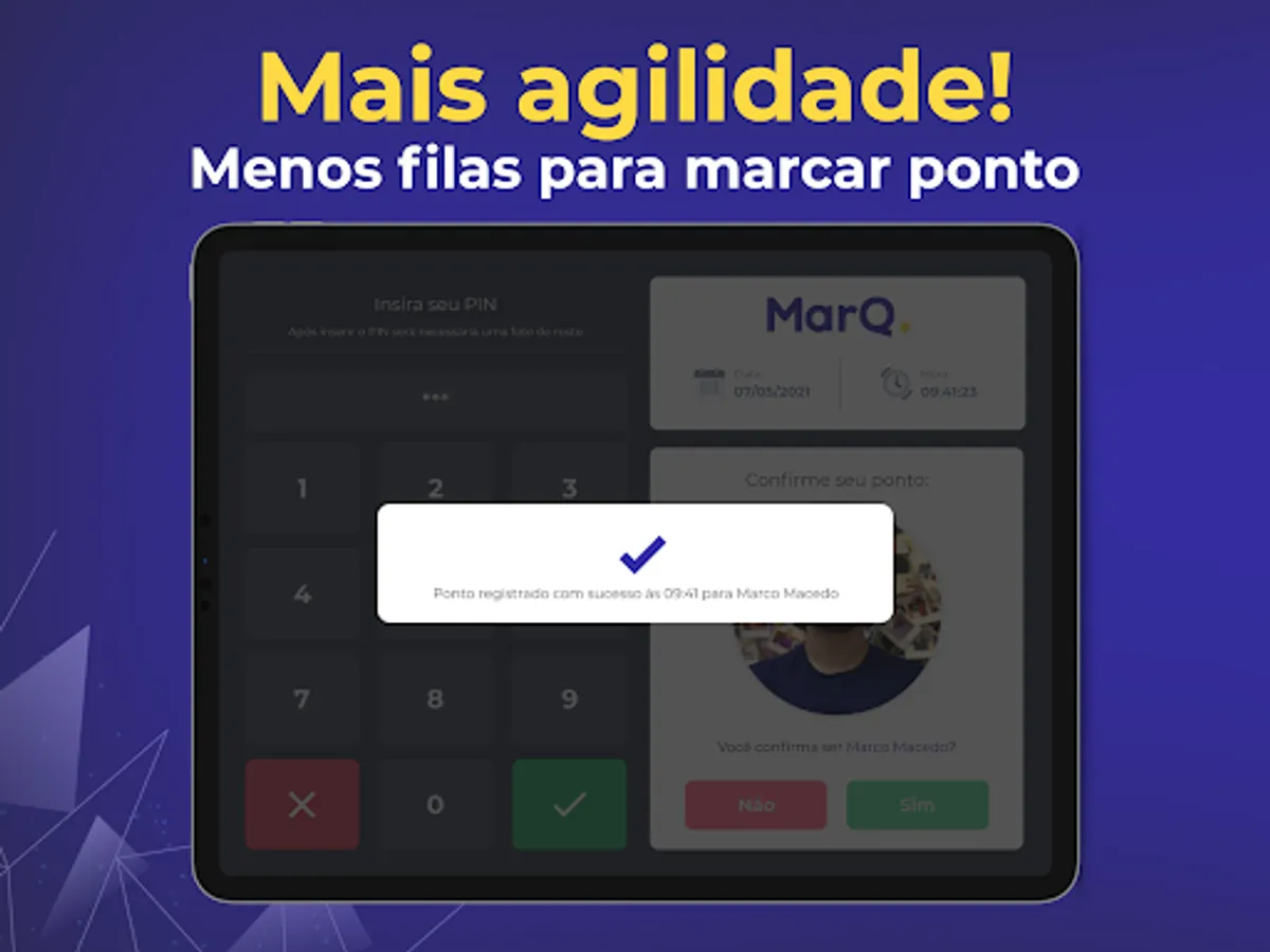The registered points are sent in real time if there is internet, and the employee can view the records in the MarQPonto application.