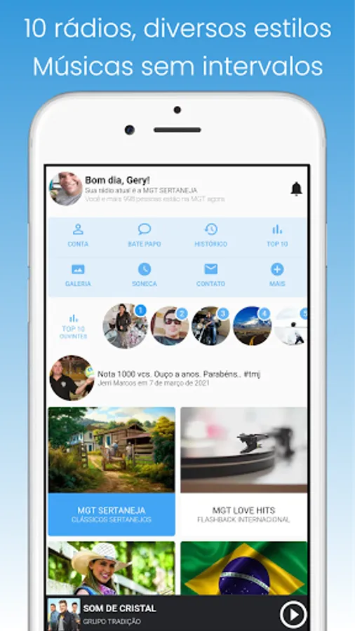 Listen to the best of university country music, root country music, forró, piseiro, arrocha, MPB samba, pagode, rock, pop rock, gospel music, brega, young guard, flashback and much more. We have a radio for every style.