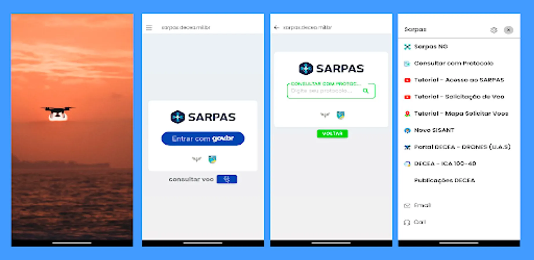 SARPAS is a system developed by the Department of Airspace Control (DECEA) with the aim of enabling the request for access to Brazilian airspace for the use of Remotely Piloted Aircraft Systems (RPAS), that is, Drones, contributing to safe flights and within the norms.