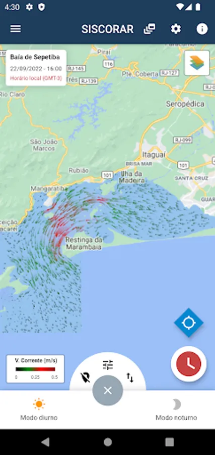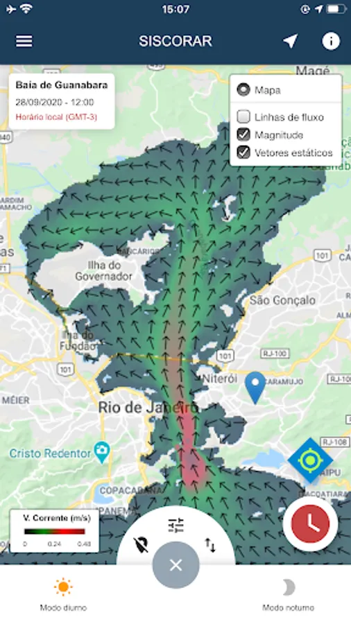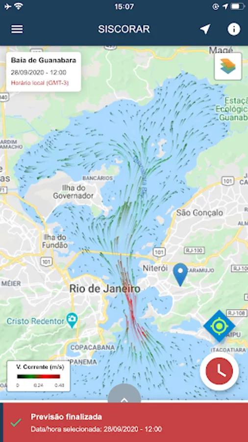 Developed by the Oceanographic Modeling and Observation Network (REMO) team through a cooperation agreement between the Navy Hydrography Center (CHM) and Petrobras, the application allows the user to access information about tidal currents in an interactive way , intuitive and friendly.