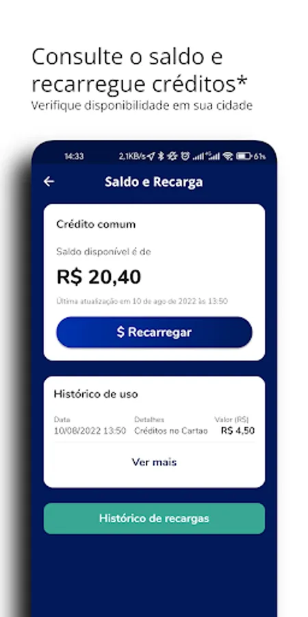 - Top up credits and check the balance of the Citizen Card (available only in the cities of Foz do Iguaçu and Gaspar)