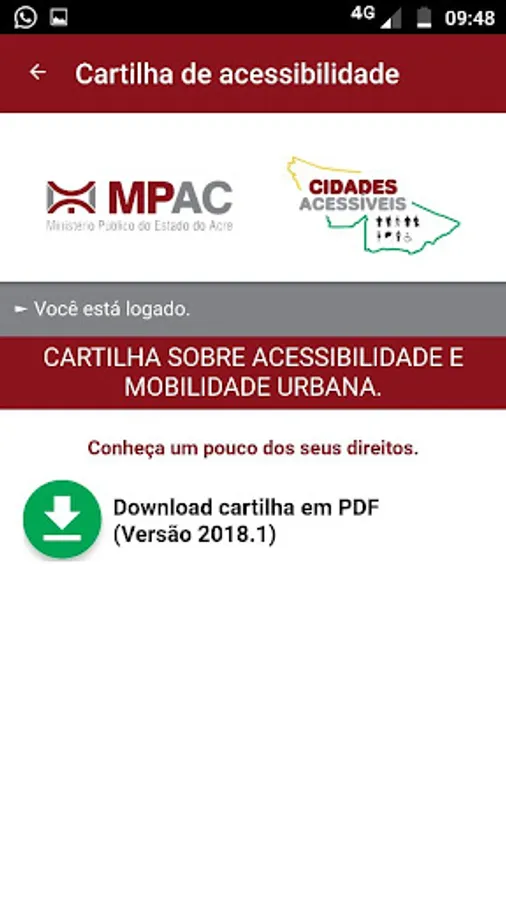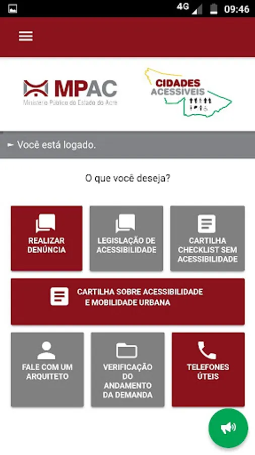 The application is focused on denunciations referring to accessibility and urban mobility, considering that the population, whether technical or not, will have an agile and electronic mechanism to maintain contact with the Public Ministry of the State of Acre.