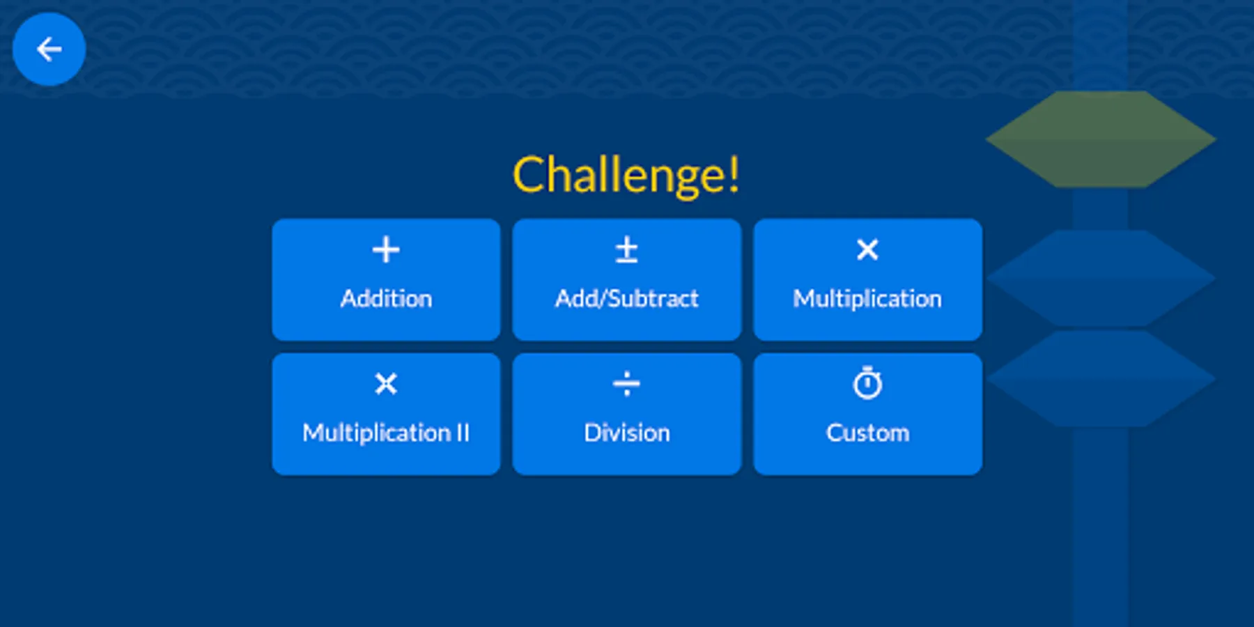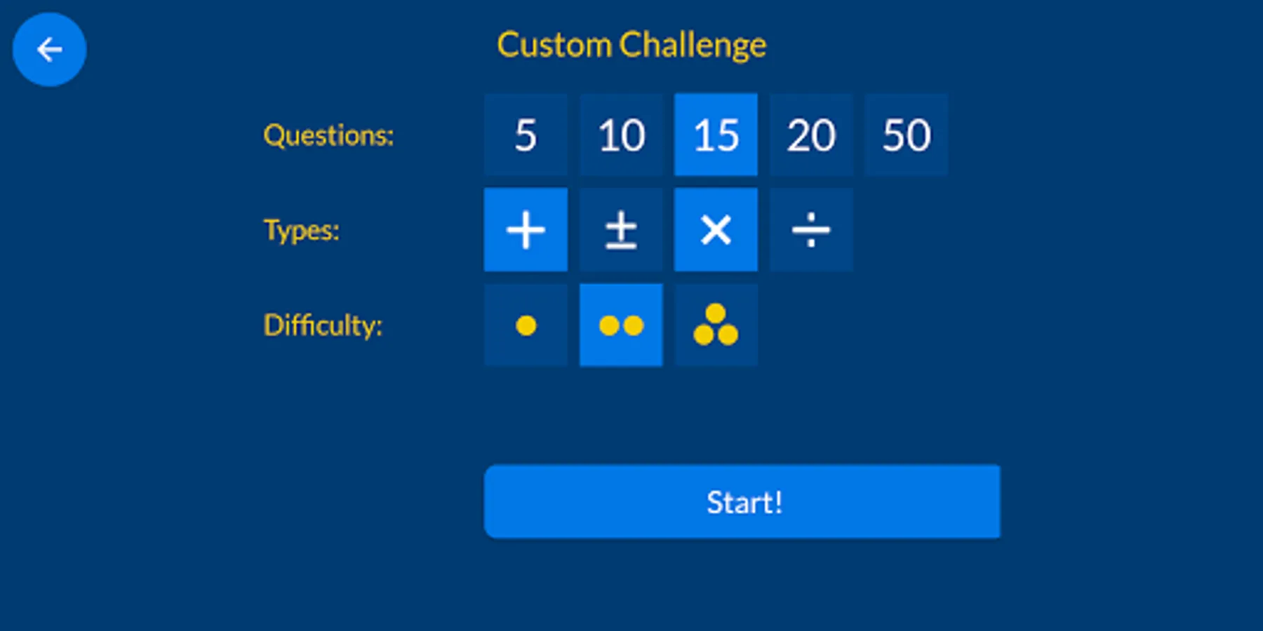 Also has a custom challenge mode where you can set the number of questions, type of questions and difficulty.